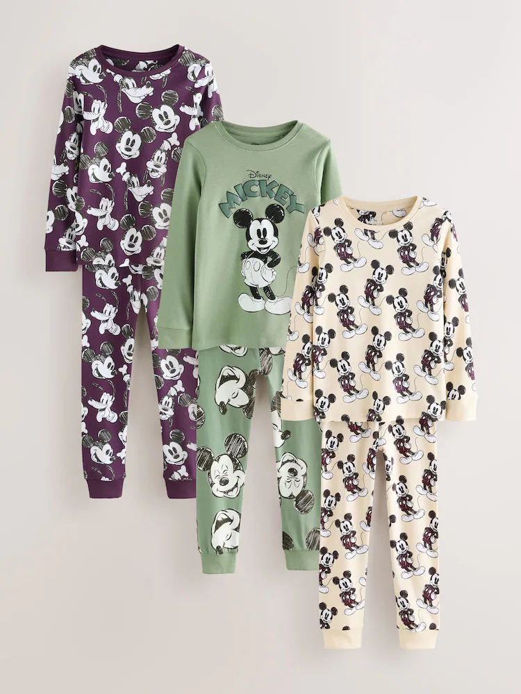 Green-Ecru Mickey Mouse License Snuggle Pyjamas 3 Pack