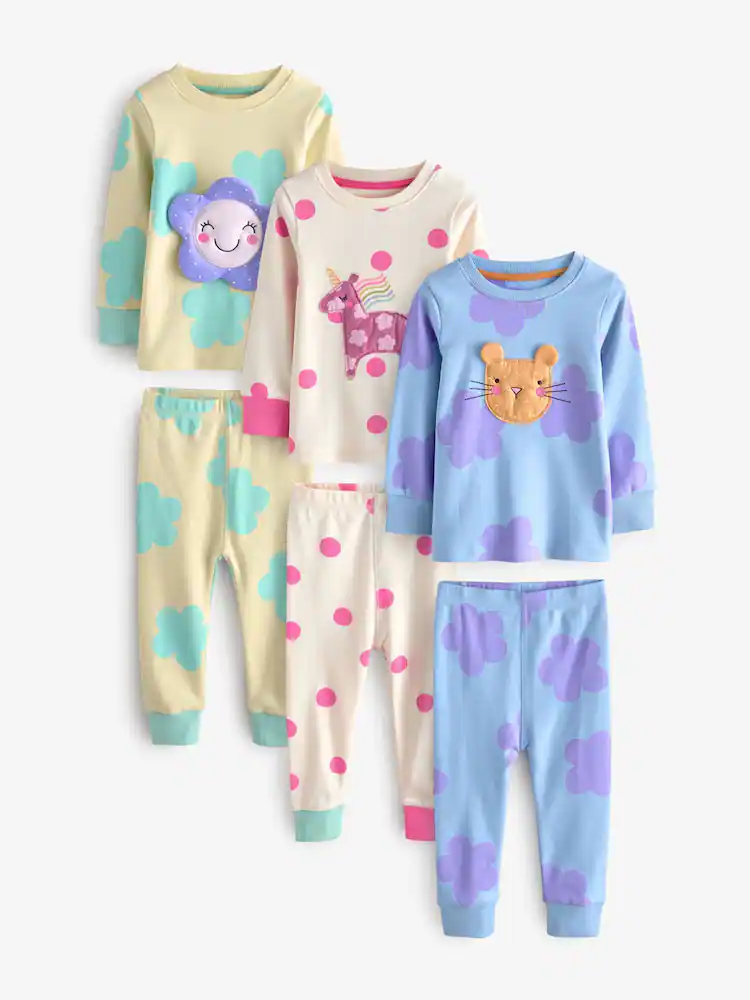 Pastel Cat- Unicorn- Flower Long Sleeve Snuggle Pyjamas 3 Pack
