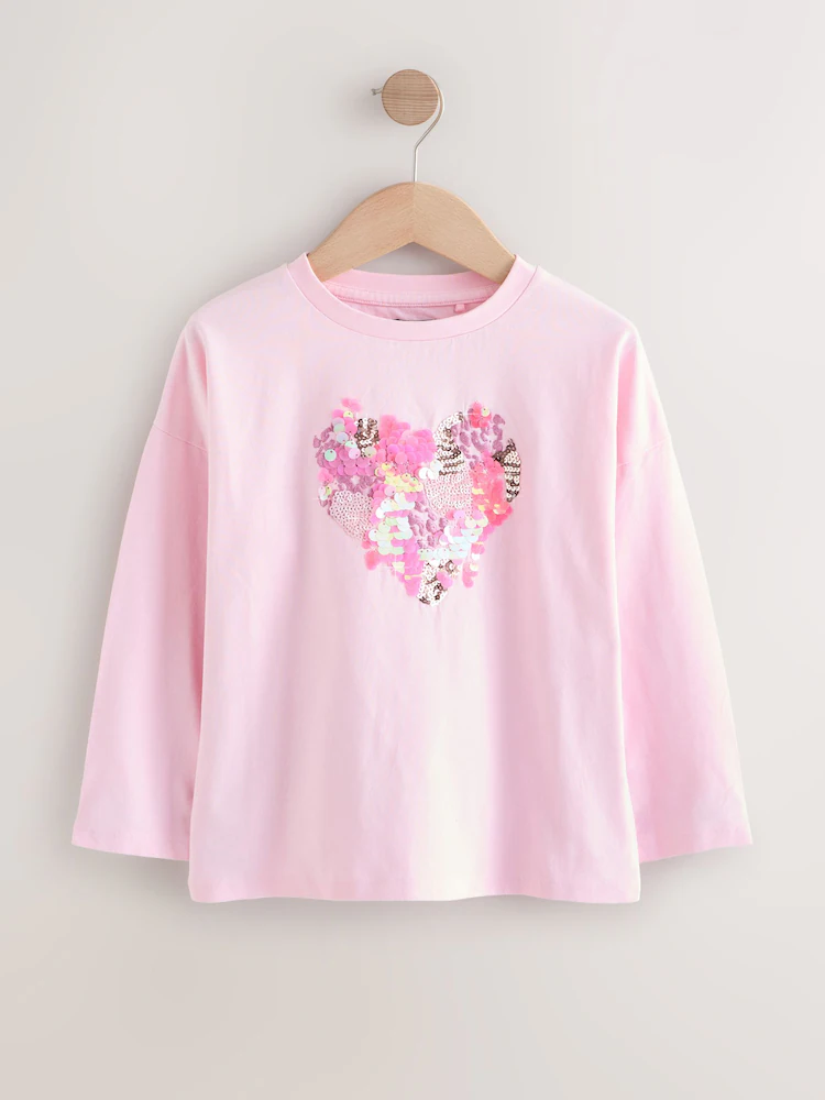 Pink Heart Long Sleeve Sequin